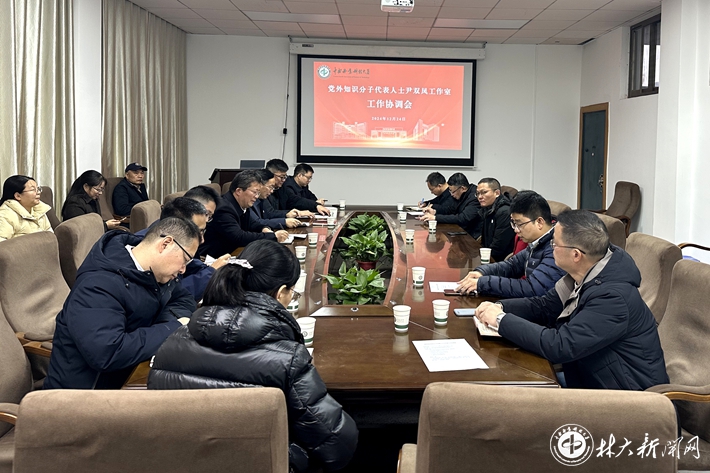 【林大网讯】(文/宣传统战部)12月24日下午,党外知识分子代表人士尹双凤工作室工作协调会在经世楼召开。副校长、农工党湖南省委副主委尹双凤出席会议。宣传统战部、学生工作部、科学研究院、人事处、化学与化工学院等相关职能部门负责人;校知联会、民盟中南林基层委员会、农工党中南林支部负责人及工作室骨干成员等20余人参加会议。会议由宣传统战部常务副部长周预分主持。