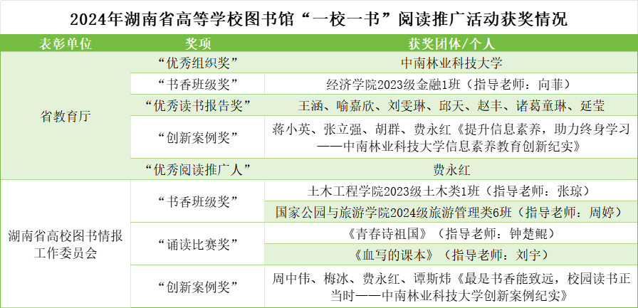 我校在2024年湖南省高等学校图书馆“一校一书”阅读推广活动中荣获多个奖项